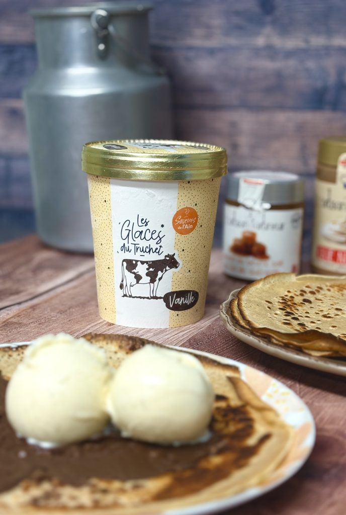 Cassis ( origine Veyziat ); Passion; Mangue; Thé Chaï; Banane Pépites de chocolat; Straciatella, Spéculoos.